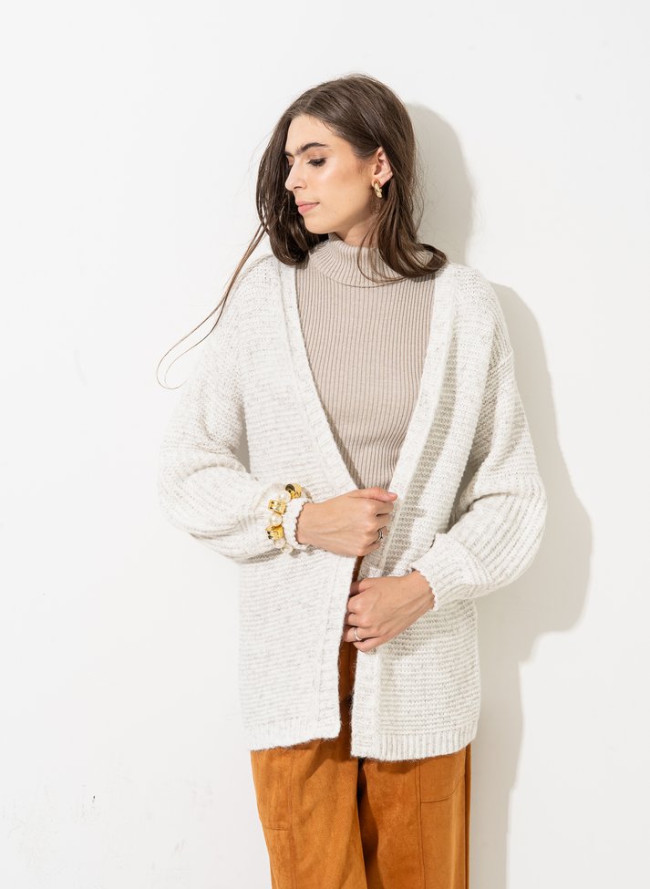 O tricô sempre é uma ótima escolha. Ele é elegante, atemporal e conversa muito bem com vários ambientes. O Casaco Alongado Ref 402 é a terceira peça que veio para ser o seu parceiro neste inverno, aconchegante e quentinho, você não vai querer tirá-lo do corpo e tenho certeza que estará com você por onde for.