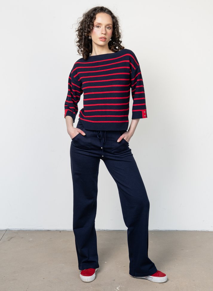 O conjunto de 2 peças composto por calça wide leg pantalona e blusa listras manga ¾ é aquele tipo de look que você não vai querer tirar do corpo.