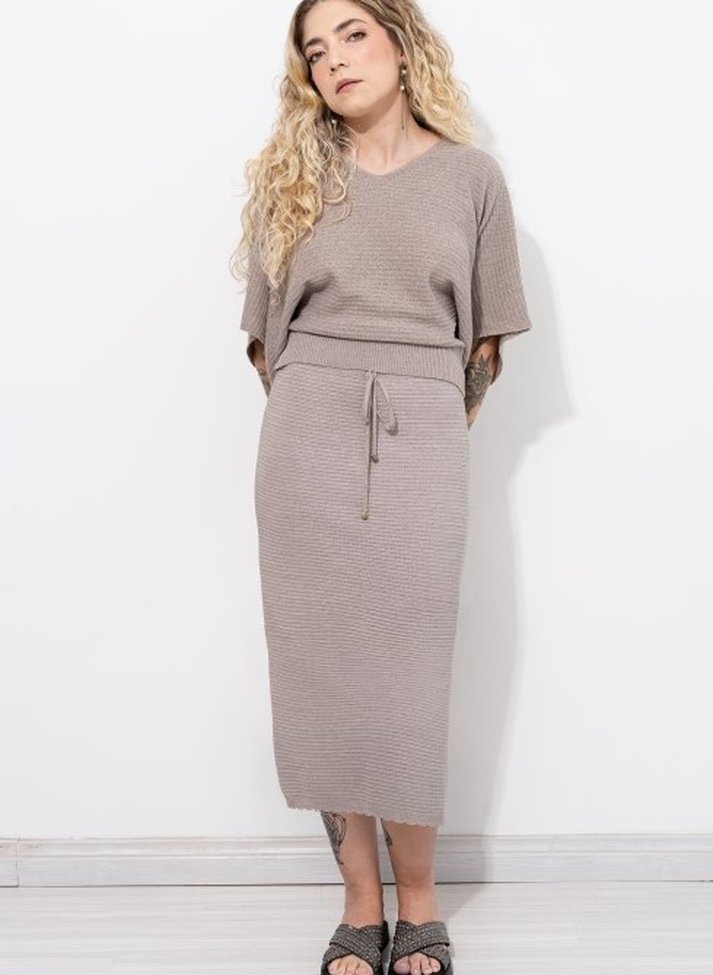 A Saia Midi Tricot com trama em relevo é sinônimo de delicadeza e charme. Rica em detalhes ela traz, além de uma trama toda trabalhada, uma finalização em ondinhas na barra. Com a cara do verão, ela vai trazer um toque rústico para os seus looks! Nossa saia, assim como a maioria das peças Michele Tricot, é confeccionada com fio de algodão. Com cintura elástica, cordão para amarração e fendas laterais, a peça oferece conforto sem igual e total liberdade para os seus movimentos.